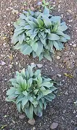 Стебли 30—80 см высотой, одиночные, прямостоячие, при основании слегка приподнимающиеся, большей частью тёмно-лиловые, простые, более-менее равномерно олиственные, с отмирающими к началу цветения самыми нижними листьями, в нижней части обычно голые, ось соцветия густо войлочно опушённая.