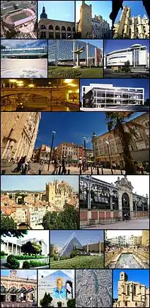 Собор святого Жюста, заложенный в 1272 году, так и не был достроен. Он знаменит необычайно высокими хорами и в целом следует образцу готических храмов севера Франции. Базилика святых Павла и Сергия — один из первых на юге Франции примеров готики. Дворец архиепископов был перестроен в XIX веке; от его средневекового предшественника сохранилось несколько мощных башен. В настоящее время во дворце размещён краеведческий музей.