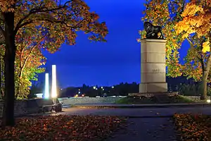 - Шведский лев — в память о битве под Нарвой 1700 года между войсками Петра I и шведского короля Карла XII, восстановлен 19 ноября 2000 года. Первоначально был установлен в 1936 году.