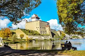 Важную роль в истории Нарвы сыграло её приграничное расположение[9]. В начале XIII века северную Эстонию захватили датчане, вплоть до естественного географического рубежа — реки Наровы.