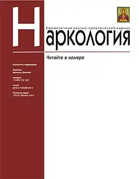 ![]() Типовая обложка научно-практического журнала «Наркология» | |