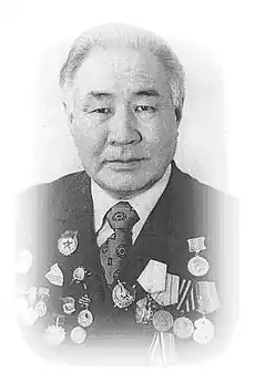 Награждён 3 орденами (в том числе орденом Красного Знамени[1]), а также медалями.[2]