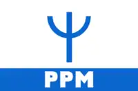 Эмблема партии — белая буква греческого алфавита Пси и белая аббревиатура PPM в синем круге[8].