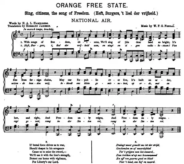 Народная песня (Оранжевого) Свободного Государства, африк. Vrystaatse Volkslied, нидерл. Volkslied van de Oranje Vrijstaat — национальный гимн Оранжевой республики с 1854 по 1902 г. Автор слов — Х. Хамелберг, автор музыки — Виллем Николаи.
