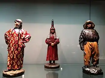 Впервые в России фарфоровые статуэтки представителей различных народностей страны появились в качестве дара короля Пруссии Фридриха II императрице Екатерине II. Они входили в состав сервиза, выполненного в 1770—1772 годах на Берлинской фарфоровой мануфактуре и помещались в комплексе настольного украшения — фигуры императрицы, сидящей на троне, окружённой поклоняющимися ей людьми из числа русских народностей и пленных турок[3].