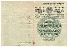 Свидетельство о рождении сторона А (1943, НКВД УССР)