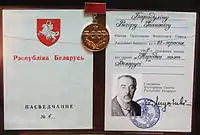Нагрудный знак и удостоверение Рыгора Бородулина