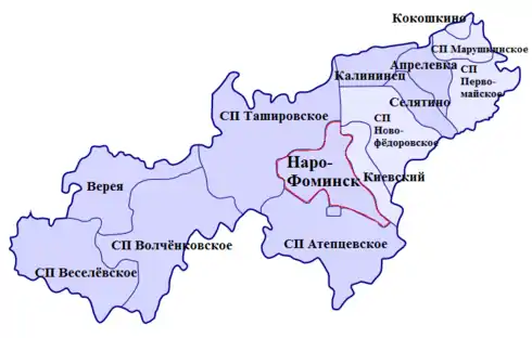 В 2005 году в ходе муниципальной реформы в России в рамках Наро-Фоминского муниципального района, в его составе были образованы 14 муниципальный образований нижнего уровня — 7 городских и 7 сельских поселений[38].