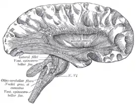Поверхностный разрез ствола мозга. Латеральный вид.