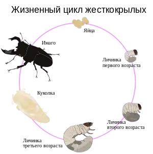 Полный жизненный цикл насекомых включает эмбриональное развитие (фаза яйца) и постэмбриональное, сопровождающееся метаморфозом. Выделяют два основных типа метаморфоза — неполное и полное превращение. Неполное превращение характеризуется прохождением насекомым трёх фаз развития (яйцо, личинка и имаго), а полное — четырёх (яйцо, личинка, куколка и имаго). У насекомых с неполным превращением личинки внешне похожи на взрослых насекомых, отличаясь от них меньшими размерами тела, отсутствием или зачаточным состоянием крыльев и половых придатков. Насекомые с полным превращением характеризуются червеобразными личинками, и лишь взрослые особи обладают всеми особенностями, характерными для отряда в целом. В фазе личинки у насекомых происходит рост и развитие, а в фазе имаго — размножение и расселение[2].