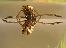 Дыхательная система большинства насекомых представлена множеством трахей, пронизывающих всё тело и открывающихся наружу с помощью дыхалец (стигм)[34], которые регулируют поступление воздуха[33]. Трахейная система насекомых может быть открытой (типична для многих наземных свободноживущих видов или для водных насекомых, дышащих атмосферным кислородом) либо замкнутой. При втором типе трахеи имеются, но дыхальца отсутствуют. Этот тип характерен для водных или эндопаразитических насекомых, дышащих кислородом, растворённым в воде или в полостной жидкости хозяина. Многие водные личинки насекомых, имея замкнутую трахейную систему, дышат растворённым в воде кислородом и обладают жабрами, которые обычно располагаются по бокам брюшных сегментов или на кончике брюшка[34].