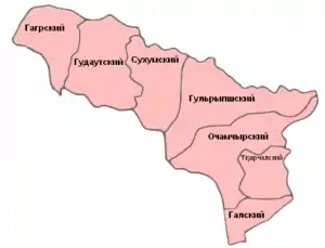 | Гудаутский район | 36775 | 10082 | 27,4 % | 26693 | 72,6 % |