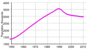 | ↗2 435 000 | ↗2 491 873 | ↗2 547 900 | ↗2 611 000 | ↗2 676 000 | ↗2 740 000 | ↗2 799 700 | ↗2 851 600 | ↗2 914 000 | ↗2 973 000 |