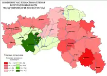 ![]() Доля русских в населении Белгородской области по городским и сельским поселениям |