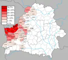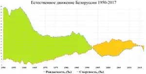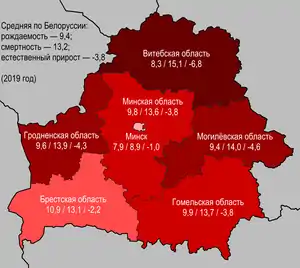 Населе́ние Белору́ссии — совокупность людей, проживающих на территории Белоруссии. По оценке на 1 января 2021 года, население республики составило 9 349 645[1]. С начала 2015 года по январь 2018 года прирост населения составил 10,7 тыс. человек. Естественная убыль населения в январе — сентябре 2014 года по сравнению с соответствующим периодом 2013 года уменьшилась на 75,3 % и составила 1545 человек[2]. Миграционный прирост в январе — сентябре 2014 года составил 8474 человека[2].