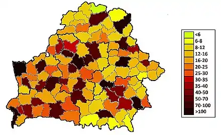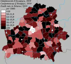 По состоянию на 2017 год Белоруссия по продолжительности жизни занимала 107-е место в мире из 191 государства — 73,1 год[22][23].