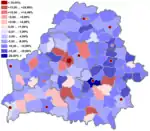 Плотность населения Белоруссии по муниципальным образованиям на 2016 год.