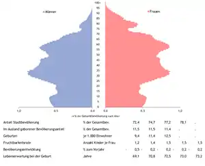 | Ожидаемая продолжительность жизни при рождении (по годам)[24][25]: |