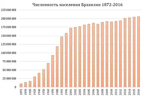 Основное население страны — бразильцы — одна из самых многочисленных и самых смешанных групп в мире. Общая численность около 190,7 млн чел. (2010 г., перепись).