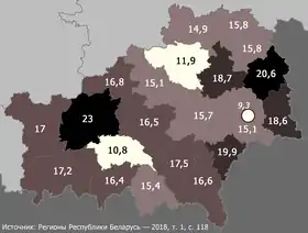 Всего в 2016 году в Гомельской области родилось 18 386 и умерло 18 609 человек. В 2017 году в области родилось 15 991 и умерло 18 407 человек[10].