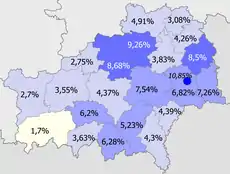 | городское население, %[4] | 70,5% | 70,9% | 71,3% | 71,9% | 72,4% | 73,1% | 73,8% | 74,6% | 75,2% | 75,9% |