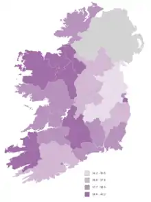 Средний возраст населения продолжал увеличился и составил 37,4 в апреле 2016 года по сравнению с 2011 годом, когда средний возраст был 36,1 лет, прирост составил 1,3 года. Средний возраст увеличился на 3,3 года по сравнению с 1996 годом, когда было всего 34,1 года. Графство Фингал продолжает иметь самое молодое население - 34,3 года, а затем графство Килдэре с 34,9 лет. В Керри и Майо самое старое население, со средним возрастом в 40,2 года.