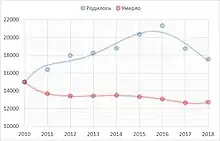 С революцией и последовавшей за ней Гражданской войной связан ощутимый демографический провал — за 3 года население сокращается более, чем на четверть. [44]