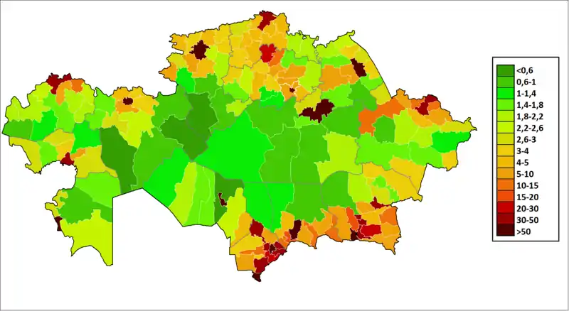 - Динамика численности и состава населения Казахстана во второй половине XX века. demoscope.ru. Дата обращения: 14 января 2019., 2003
