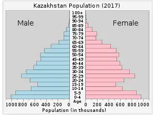 Общая численность населения Казахстана по данным на 8 декабря 2021 года составляет 19 169 550 человек[2]. Занимает 64-е место в списке стран по численности населения. Средняя плотность чуть менее 6,93 человек на км² (184-е место в списке стран по плотности населения).