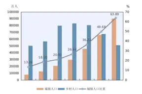 Для КНР характерны высокие темпы урбанизации: доля городского населения в стране в 1978—2020 годах возросла с 17,92 % до 63,89 %[1][2][3][4][17][18]