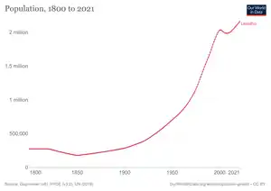 Согласно данным переписи населения 2016 года общая численность населения Лесото составляет 2 007 201 человек[1]. Из них 31,7 % населения живут в городах и 68,3 % в сельской местности. В столице Масеру проживает более половины всего городского населения. Средняя плотность населения в стране — приблизительно 66,1 человека на кв. км.