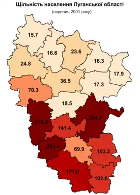 По данным Госкомстата на 1 октября 2014 года в области проживало 2227,6 тыс. человек[1] человек (2546,2 тыс. в 2001 году и 2862,7 тыс. в 1989 году). По численности населения Луганская область занимала 6 место среди областей Украины.