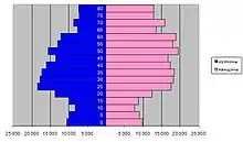 Мужчин в городе 206 669 чел., женщин — 248 469 чел., таким образом, на 1000 женщин приходится 832 мужчина, а в том числе: