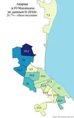 ![]() Аварцы в городском округе Махачкала в %, перепись 2010 г. |