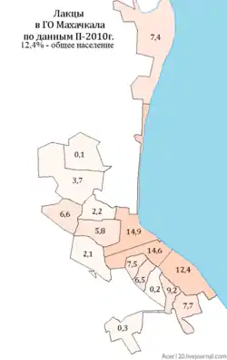 ![]() Лакцы в городском округе Махачкала в %, перепись 2010 г. |
