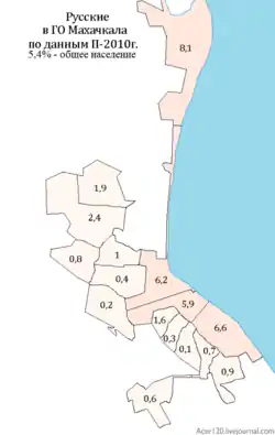 ![]() Русские в городском округе Махачкала в %, перепись 2010 г. |