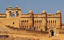 Наиболее примечательными образцами так называемого «раджпутского» стиля архитектуры являются обсерватория Джантар-Мантар, дворцы Хава-Махал и Чанд-Махал в Джайпуре, дворцы Джаг-Мандир и Джаг-Нивас в Удайпуре, крепости (форты) Амбер и Нагаргарх в Джайпуре, Мехрангарх в Джодхпуре, Читор в Читторгархе, а также крепости Нагаура, Джайсалмера, Биканера и Бхаратпура, башни Джай-Стамбха и Кирти-Стамбха в Читторгархе, деревенские дома-крепости раджпутов. Раджпутская миниатюра (особенно её меварская, бундийская и пахарская школы) считается наиболее известной формой индийской живописи и наряду с архитектурой является предметом заслуженной гордости раджастханцев. Также в штате широкое развитие получили такие формы народной живописи, как ритуально-магическая роспись стен, нанесение ярких картинок на полотнища ткани, которые служат декорациями странствующих артистов или храмовыми завесами (пиччхваи), изготовление красочных панно из ткани, которыми украшают стены жилищ, нанесение картинок на стекло и даже роспись тел верующих (например мехнди — нанесение ритуальных узоров на руки женщин)[117].