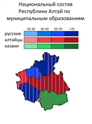 | Район | Алтайцы | Казахи | Русские | Кумандинцы |