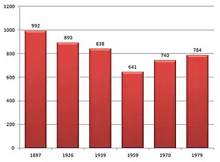 | 1926[27] | 1939[28] | 1959[29] | 1970[30] | 1979[31] | 1989[32] | |||||||