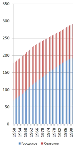 | Год | Население СССР, млн чел. | Городское | Сельское |