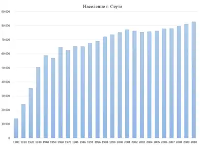 Проведя анализ эволюции населения города, видно, что для XX века, характерен в общем, бурный рост населения, население выросло с 13 843 жителей в 1900 году до более чем 75 241 в 2000 году, что составляет 443,53 % роста. В новом веке, после начала низких темпов роста мировой экономики, за 10 лет число жителей увеличилось только на 9,79 %. Если мы проанализируем эти два столетия, то увидим, что в течение первых пятидесяти лет ХХ века население увеличилось более чем на 311,1 %. Причины, вызвавшие рост, это сильные экономические и социальные связи города с Марокко. В то же время, рост во второй половине ХХ связан с производственно-финансовым расширение особой экономической зоны и изменением налогового режима г. Сеута, в связи с чем, рост населения составил лишь 32,21 %. XXI век отмечен низкими темпами роста населения. Изменение населения страны определяется тремя факторами: изменением места жительства, рождаемостью и смертностью. Анализируя данные смертности и рождаемости, Национальный институт статистики в 2011 году показывает, что в Сеуте рождаемость 14,85 %, является второй по величине в Испании, превышает её только Мелилья (18,66 %), будучи на пять процентных пунктов выше среднего по Испании (10.16 %). С другой стороны, уровень смертности города (6,54 %) является одним из самых низких в стране, почти в двух процентных пункта ниже в среднем чем по стране (8,40 %).[1]