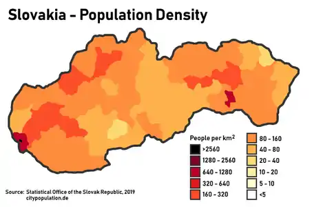 Плотность населения Словакии по районам
