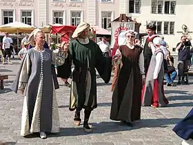 Национальный состав города несколько раз претерпевал существенные изменения. В 1230 году Орден меченосцев, занявший Таллин (Линданисе) в 1227 году, пригласил из Готланда 200 немецких купцов, которые поселились у подножия Тоомпеа. Слобода у подножия Тоомпеа (в Нижнем городе), в которой раньше располагались скандинавские и русские товарные дворы для проезжающих купцов, стала постоянной. С XIII века до 1877 года городом Таллин считался Нижний город. На Тоомпеа власть ратуши не распространялась, и Любекское право там не действовало[24][25].