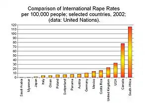 - The Eighth United Nations Survey on Crime Trends and the Operations of Criminal Justice Systems (2001—2002) Архивная копия от 15 ноября 2007 на Wayback Machine — Таблица 02.08: Total recorded rapes