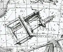 Французский астроном Лакайль в 1754 году выделил это маленькое и тусклое созвездие, дав ему название Воздушный насос, и посвятил его физику Роберту Бойлю. Название латинизировано в 1763 году.