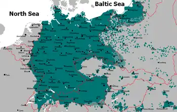 Подобная же политика проводилась в восточном направлении и в более южных регионах Европы Австрийской империей, а затем Австро-Венгрией, где немцы находились в положении доминирующего меньшинства, хотя в континентальных районах политика онемечивания менее преуспела и немецкие колонисты закрепились в основном за крепостными стенами городов.