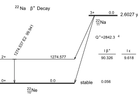 И в первом, и во втором случае испускаются гамма-кванты постоянной энергии 1274,5 кэВ. Наличие этой единственной гамма-линии позволяет однозначно идентифицировать присутствие натрия-22 в образце.