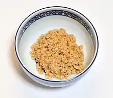 Натто (яп. 納豆 натто:, «хранящиеся бобы») — традиционная японская еда, произведённая из сброженных соевых бобов. Особенно популярен на завтрак. Обладает специфичным запахом и сладко-солёным вкусом с горчинкой, а также липкой, тягучей консистенцией[1].