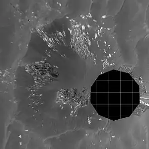 ![]() Спутниковое изображение «кратеров-тройняшек». Самый крупный ниже центра — Географ, правее его — Натуралист, вверху — Инвестигатор. Изображение орбитального аппарата MRO, камеры высокого разрешения HiRISE. | |