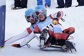 Во время движения по трассе гонщику необходимо управлять санями при помощи ног и рук, наклонов туловища. Управление осуществляется путем перенесения центра тяжести тела, нажатия ногами на изгиб полоза, а также при помощи управляющего троса, который прикреплён к краям полозьев. Рулевой носит перчатки с шипами. Торможение осуществляется шипами на обуви. В случае опрокидывания саней атлеты могут продолжить гонку, разогнав сани своими силами.